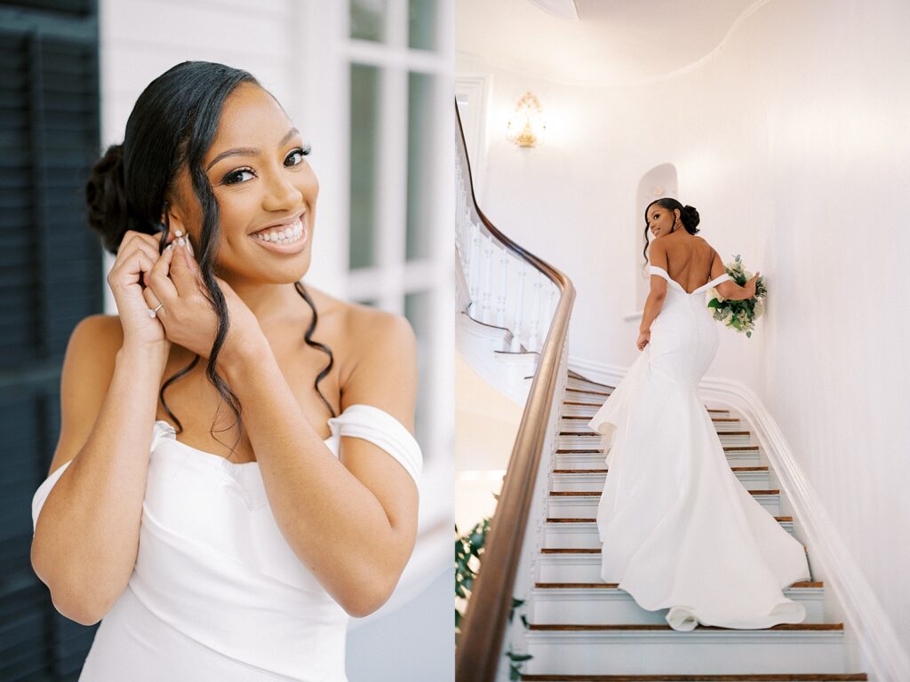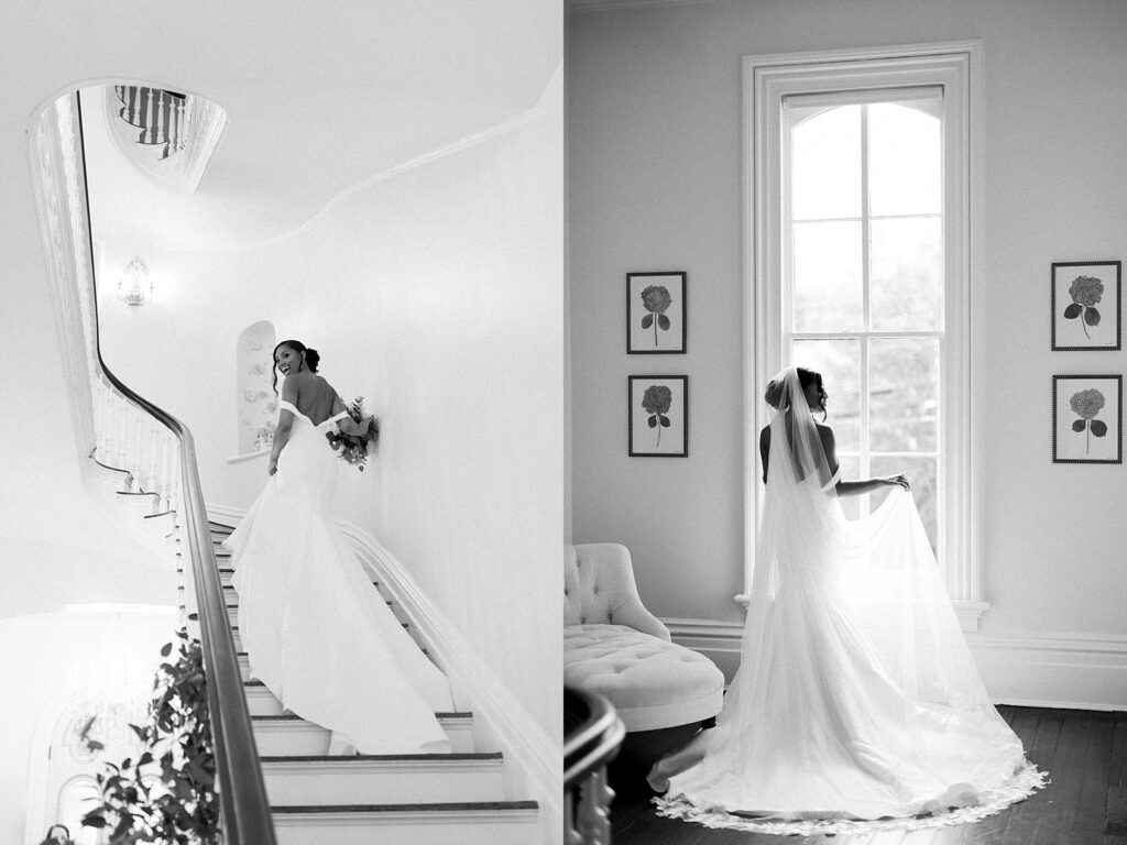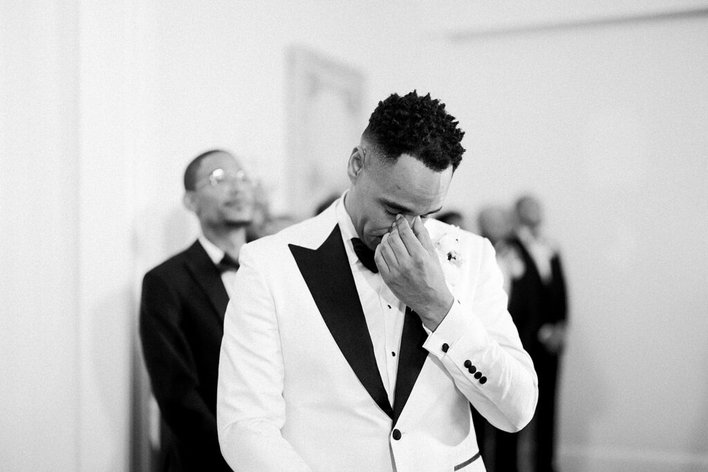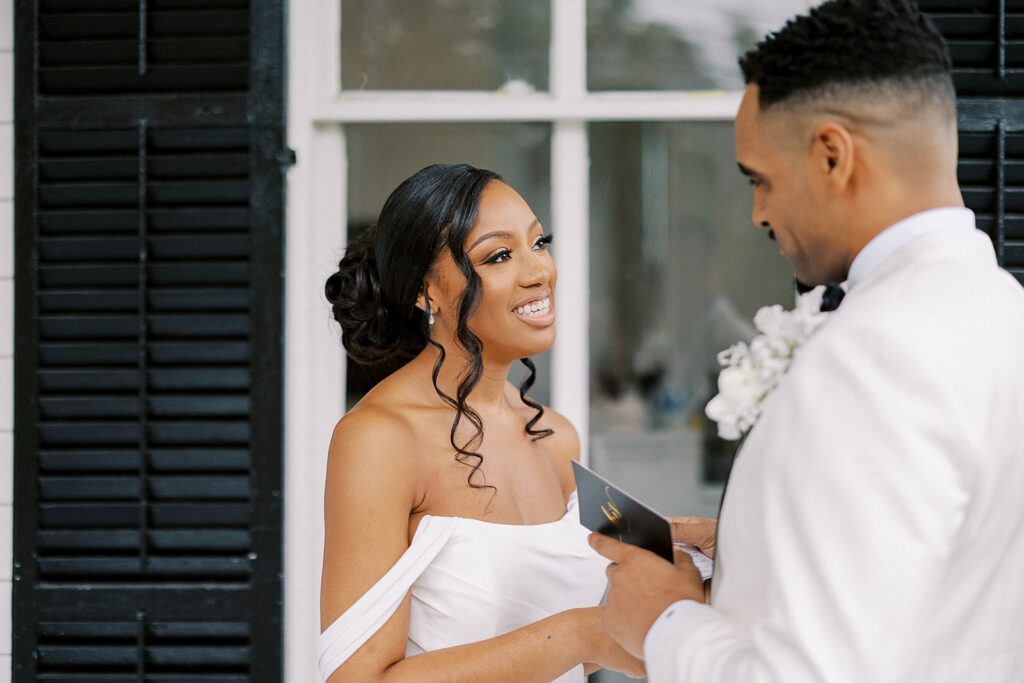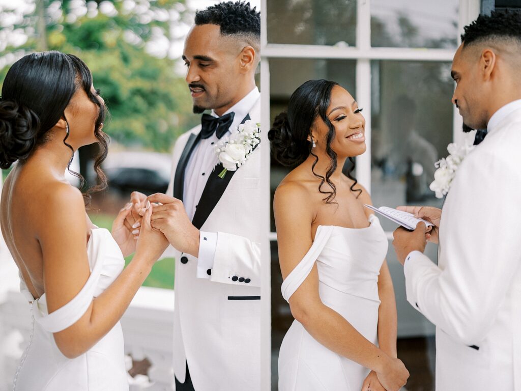 One of the most emotional moments of the day was their private first look on the front porch of the venue. As a North Carolina wedding photographer, these quiet in-between moments are often my favorite to capture. Lauren and Hascal exchanged personal vows, tears streaming as they promised to love and support one another through every season of life.